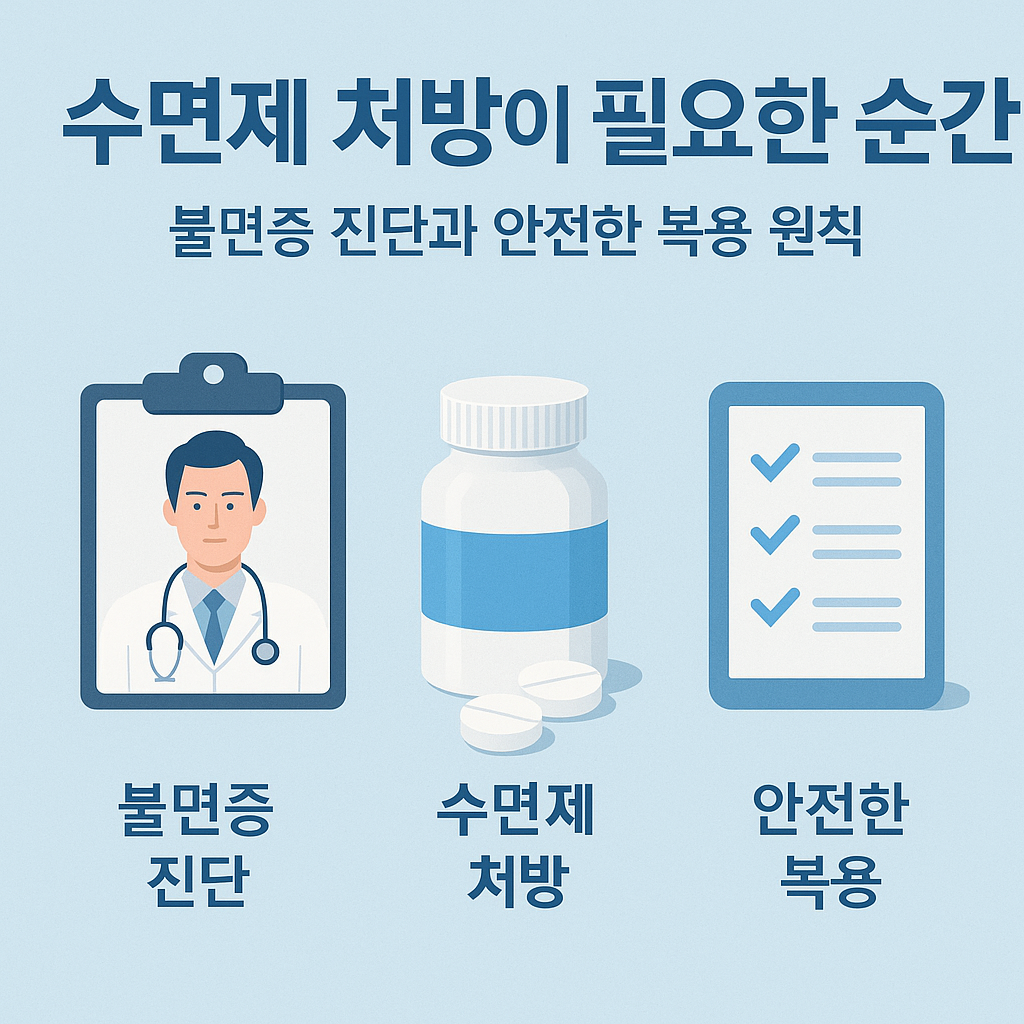 수면제 처방은 단순히 잠을 못 잔다고 바로 이뤄지는 것이 아니라, 정확한 진단 기준과 검사 과정을 통해 안전하게 결정됩니다. 단기 복용 원칙을 지키고, 생활습관 교정과 병행할 때 비로소 수면제가 본래 목적에 맞게 사용됩니다. ‘약을 먹을까 말까?’ 고민이 될 때는 스스로 결정하지 말고, 반드시 의사의 진료를 통해 개인 상황에 맞는 처방을 받는 것이 가장 안전한 방법입니다.