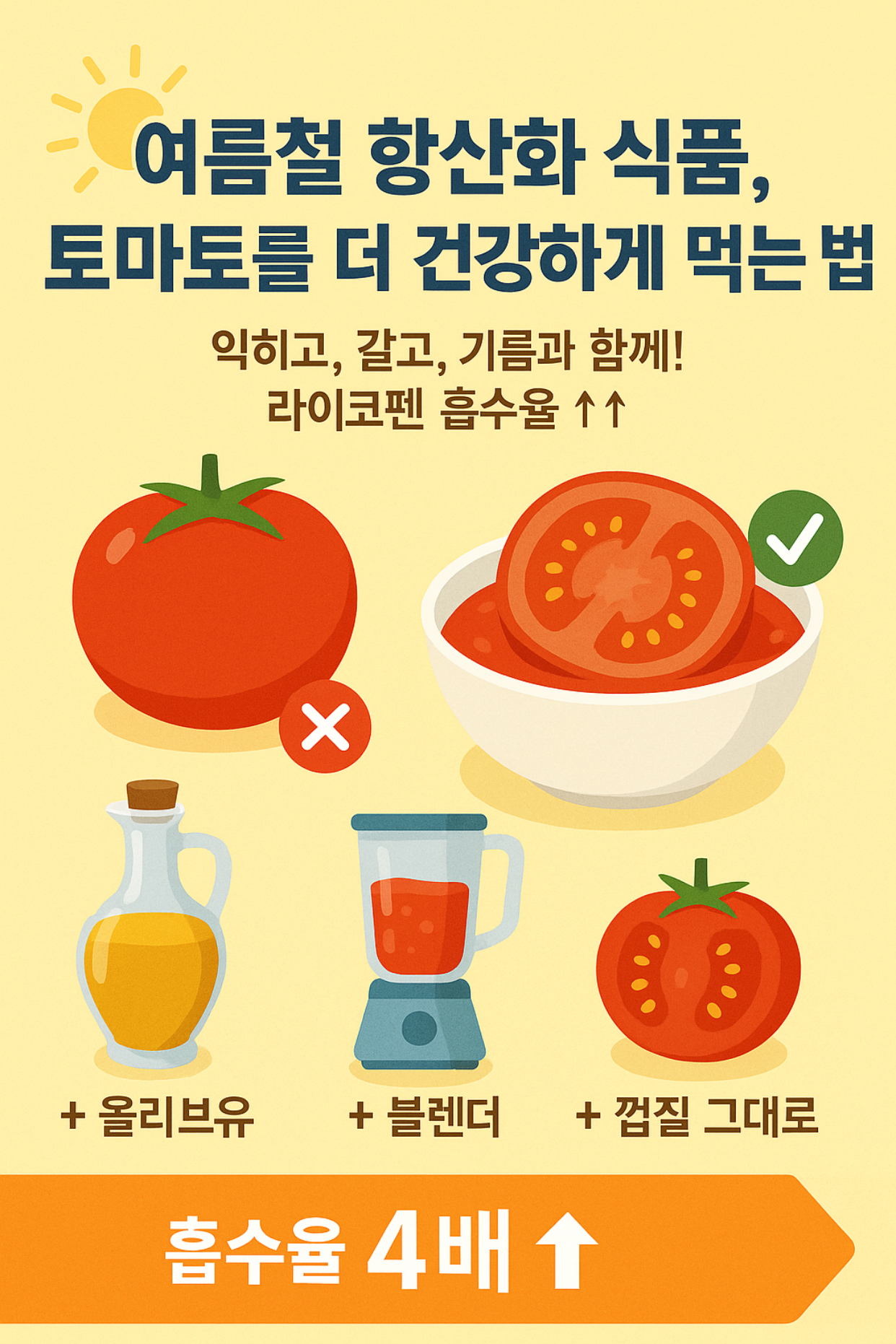 여름철 건강을 책임지는 항산화 대표 식품, 토마토를 제대로 알고 먹으면 건강 효과를 몇 배 더 누릴 수 있습니다. 라이코펜 흡수율을 높이는 조리법으로 더 건강한 여름을 맞이하세요!