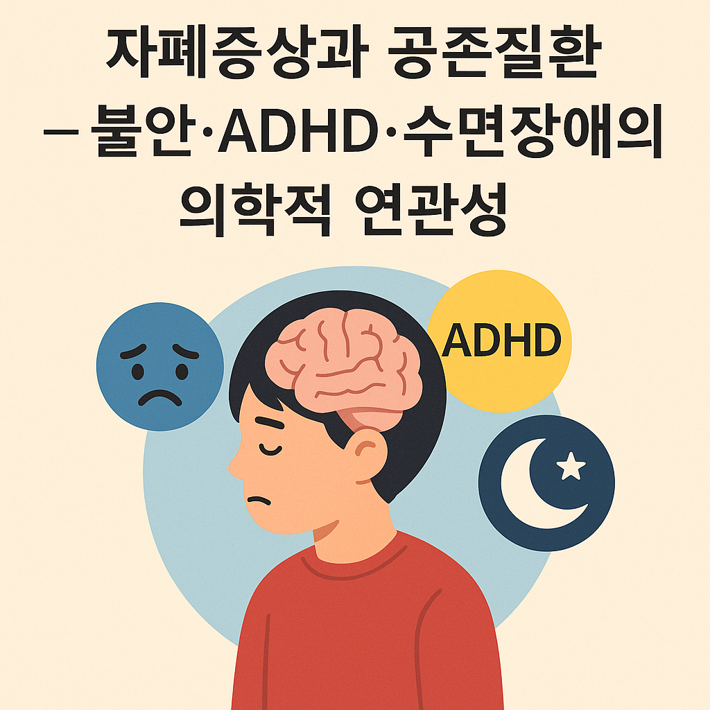 자폐증상은 사회성 부족, 언어 지연, 반복적 행동 패턴으로 대표되지만, 실제 임상 현장에서 자폐 아동·성인을 관찰하면 단일 질환으로 설명되지 않는 경우가 많습니다. 연구에 따르면 자폐스펙트럼장애 환자의 약 70% 이상이 공존질환(comorbidity)을 경험합니다. 특히 불안장애, ADHD, 수면장애는 가장 흔하게 동반되며, 이러한 문제들은 자폐증상을 더욱 복잡하게 만들고 치료 계획을 세울 때 반드시 고려되어야 합니다. 단순히 자폐만 바라보면 아이의 전반적인 발달 지연이나 정서적 어려움을 놓칠 위험이 있습니다.