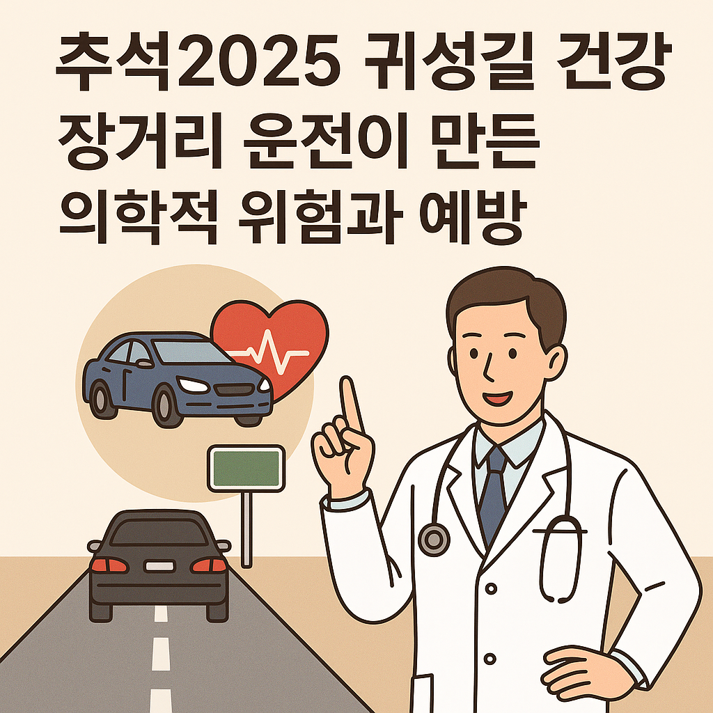 추석2025 귀성길은 가족과 만남을 기대하는 설레는 길이지만, 장거리 운전이 만드는 의학적 위험을 무시해서는 안 됩니다. 혈액순환 장애, 심혈관 질환, 정신적 스트레스까지 복합적으로 관리해야 안전한 귀향이 가능합니다. 올바른 스트레칭, 수분 섭취, 약 복용 관리로 소중한 명절을 건강하게 맞이하시길 바랍니다.